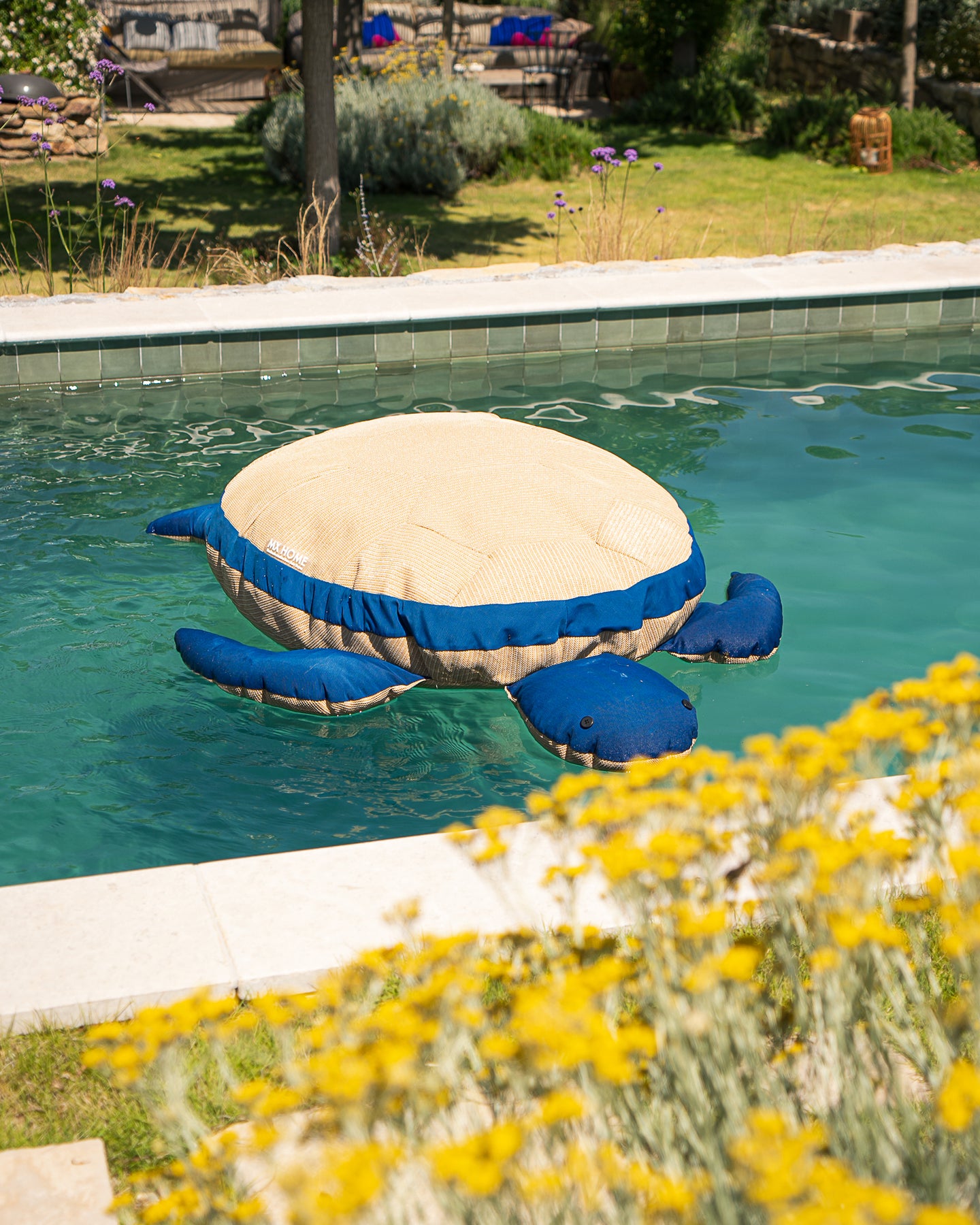 Le Pouf XL flottant Tortue a été imaginé pour apporter une forme iconique et reconnaissable directement sur l’eau.