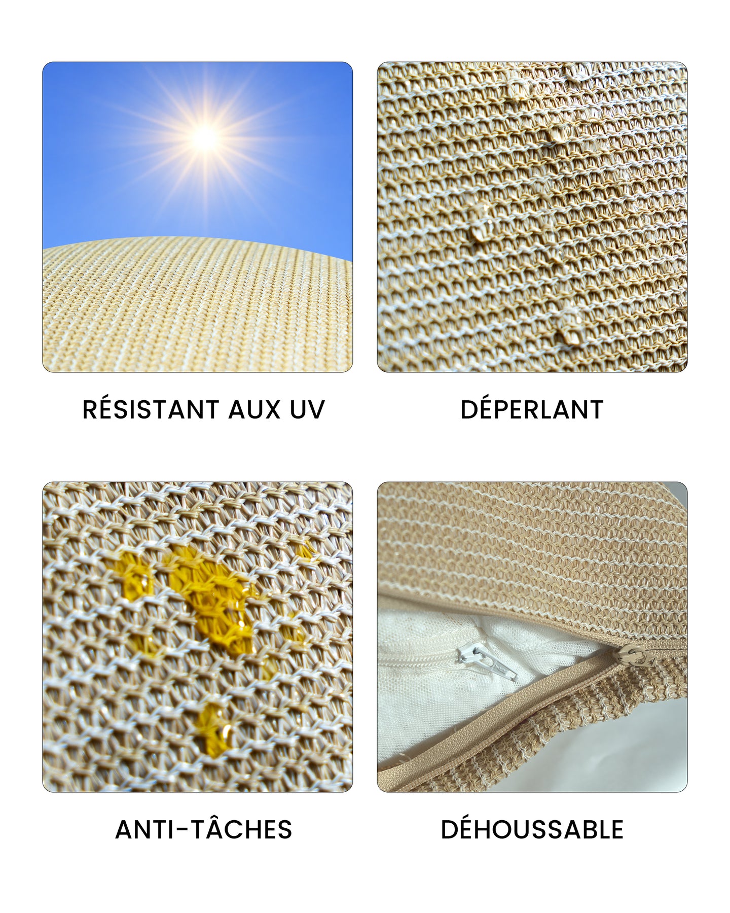 Performance : Couleur ultra résistante,Insubmersible, résistant au sel, au chlore, aux UV, aux moisissures, aux frottements, ANTI TÂCHES, hypoallergénique, sans produits toxiques pour le corps et l'environnement.